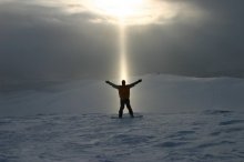 он в зимнем небе отражаясь,