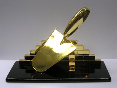 Мастер построил большое красивое здание. Его мастерок заметно износился.